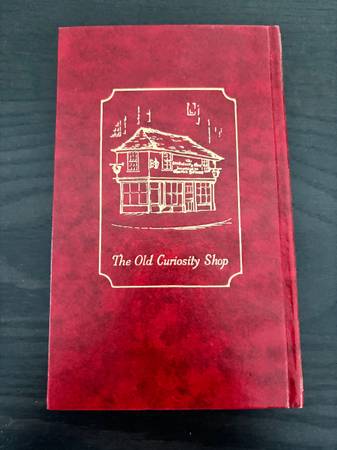 Beautiful red, faux leather-bound with detailed gold design Charles Dickens: The Old Curiosity Shop book circa 1970's purchased in England. It was actually purchased at "Dickens' Old Curiosity Shop" on Portsmouth Street in London. Has been well cared for. Looks like new.