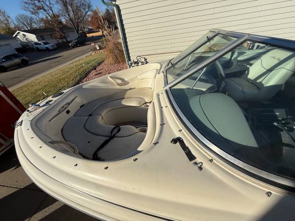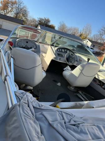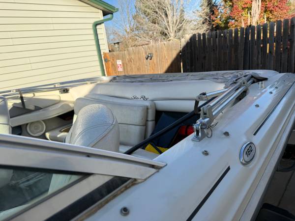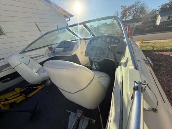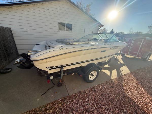 18.5 ft Sea Ray 182 open bow I/O with low hours. 4. 3 liter, 6 cyl Mercruiser. No tears in seats. Professionally winterized 7 years ago and never used since. In solid shape and two new tires. Trailer has hinge tongue for easier storage and roller loading bars for easy loading. New travel/storage cover. Sunbrella canopy for shade.