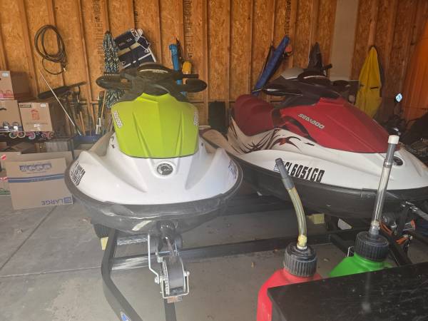 2 2008"Sea Doo's in great shape Only 50hrs on each Recently serviced brand new batteries and new tires on trailer 155-130 hp 1 each I am the only owner Zeiman trailer Both GTI (SE)model Text