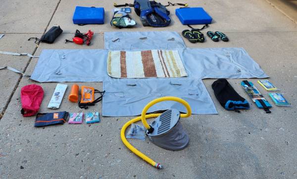 Includes: 1ea A41 Bellows foot pump, 2ea 8'4" 2part paddles w/ Carbon fiber shafts, 2 ea. small stowage bags for front and back, 2 ea. clip in tall back seats. Also includes 2 ea life jackets, 2 boat cushions, 1 ea. anchor w/ line, other accessories included.
