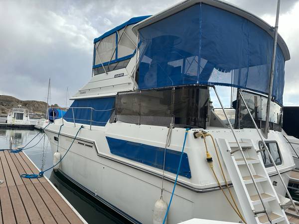 Get ready to set sail in style with the 1990 Carver 3807 Aft. Powered by twin Mercruiser 7.4L engines with direct drives and trim tabs, this boat is perfect for cruising in comfort. With its spacious layout, excellent amenities, and reliable performance, it's ready for your next adventure.