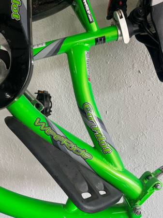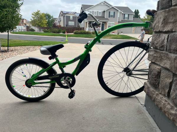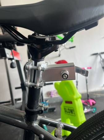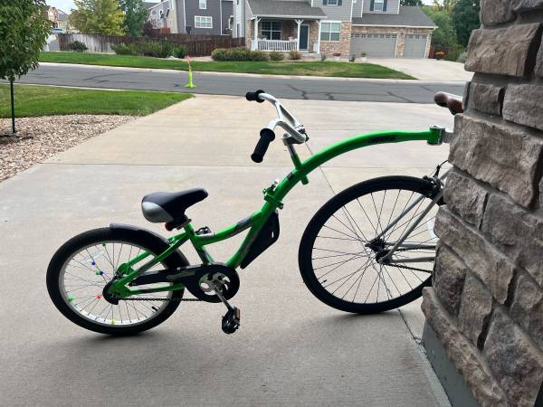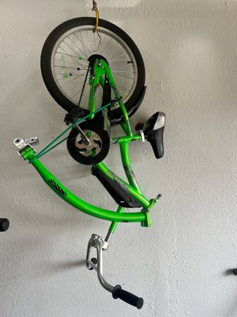 Kids ride behind bicycle. Connects to seat stem. 2 adapters included. We had one on my bike and my wife’s bike. Works as expected. Kids just grew out of it....