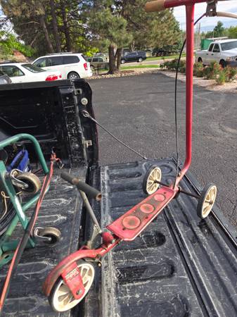 Wow,,Old pedal Push Scooter.. Nothing Broken, in good condition,,This is So Cool To Restore or keep it Original,,For Car Shows or anything else 🤔 ObO