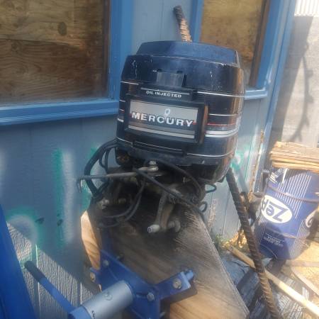 mercury oil injected 2 stroke for parts only. 75.00, or 100.00 with stand it is on. Thanks for looking.
