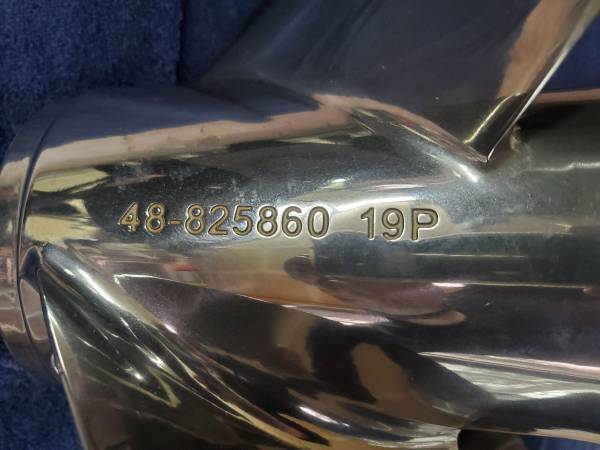 Mercury tempest plus 19 pitch stainless steel prop. New condition only ran for about 1/2 hour during testing. $500.00 . Call if interested