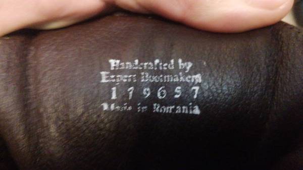 "Handcrafted by Expert Bootmakers in Romania/Eastern Europe"