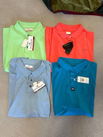 The good news is I lost some weight, the bad news is I have nine brand new Golf shirts that are now too big for me. My weight loss is your gain…. All the shirts are BRAND NEW WITH TAGS and size XXL....