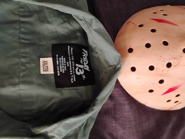 For sale Jason Voorhees costume includes plastic machete, XL/L shirt and mask. Used once. No holes stains. All items are in excellent condition. $35 obo