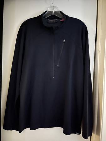 Black- Large. In good condition, but the zipper pull rubber tab came off, so it's just the metal pull.