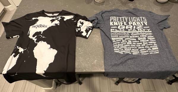 Small Decadence T-Shirt and Medium Snow Ball T- Shirt Like New EDM Dance Electronic Concert T-Shirts $100 takes them both Total
