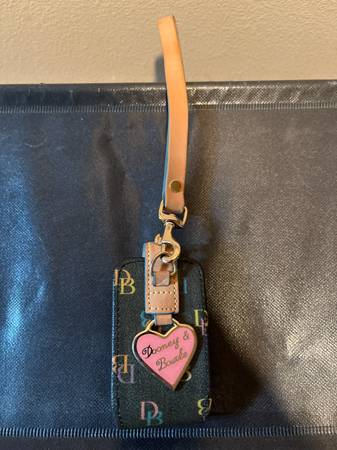 Vintage Dooney & Bourke Logo Letter Cell Phone Case Wristlet w/ Pink Heart