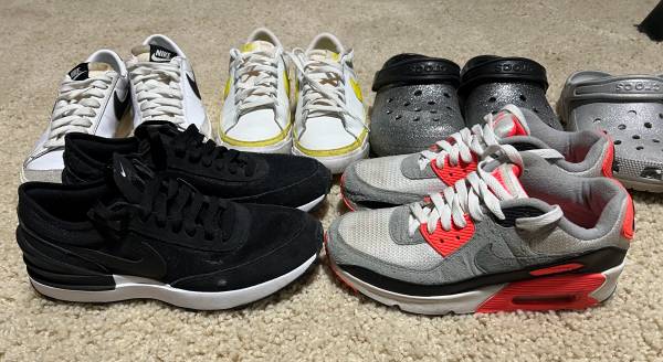 Very nice lot of shoes. No longer fit. No boxes. Cleaning out closets. Blazers and Air Max 90’s. Text only