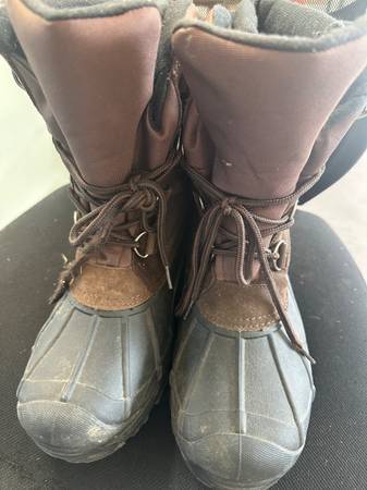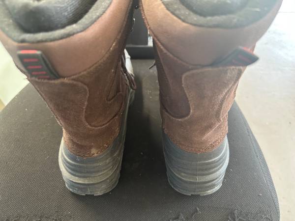 Size 13M__ Heavy duty, Removable sock liner, Medium brown, Worn only a couple times… Well insulated, Leather uppers, Ready for the winter, Great for hunting, snow walks,