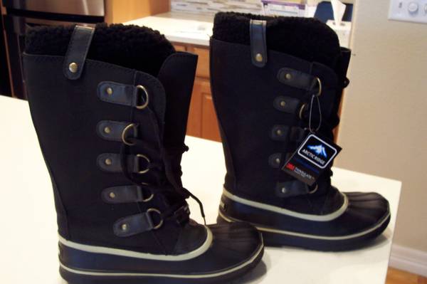 Women's snow boots. Size 6. Brand: Artic Ridge, Brand new, Never worn, still has the tags on them. Insulated with removable 3M Thinsulate. Color: Black. $20 303-681-one three five eight snow winter...