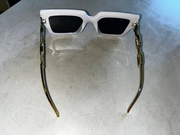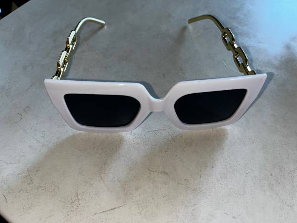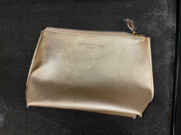 •Gold-colored makeup bag