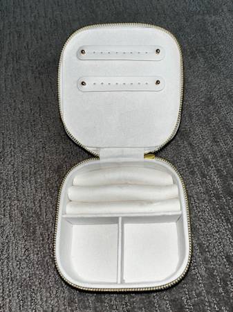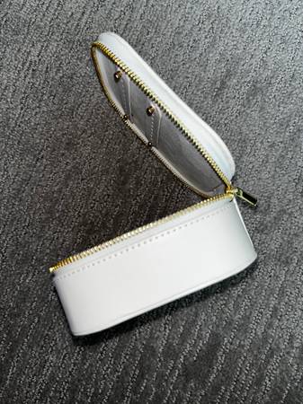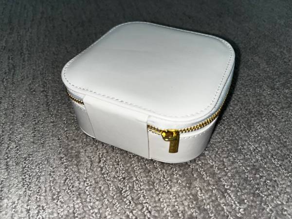 •White jewelry travel case with gold zipper