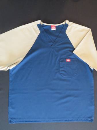 Dickies Men's V-Neck Scrub Tops, Two-Tone, LG Price is for #1, have #4 available: 1 - Navy Blue / Light Blue 1 - Back / Brick Red 1 - Royal Blue / Grey 1 - Navy Blue / Tan RN93643