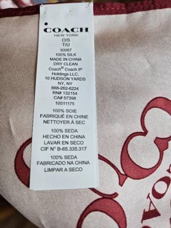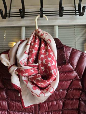 Womens COACH scarf, F30067, %100 silk, $38.00. Coat is not included. CASH ONLY, AS-IS, NO RETURNS, ALL SALES FINAL