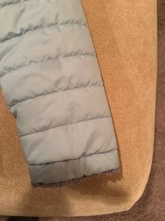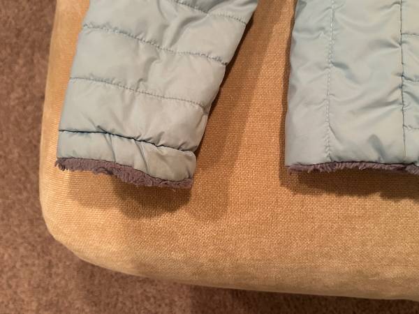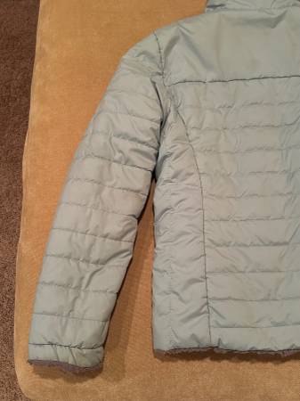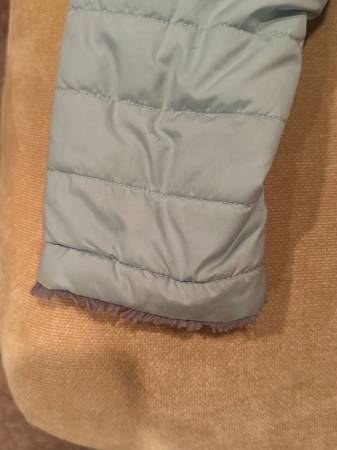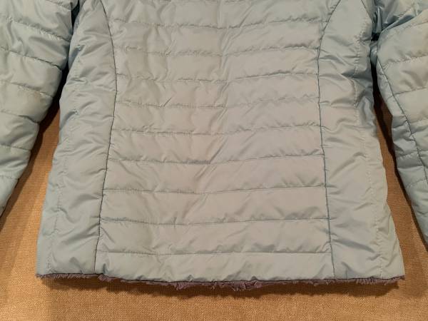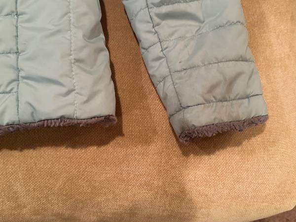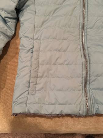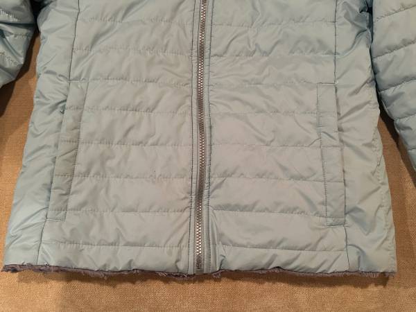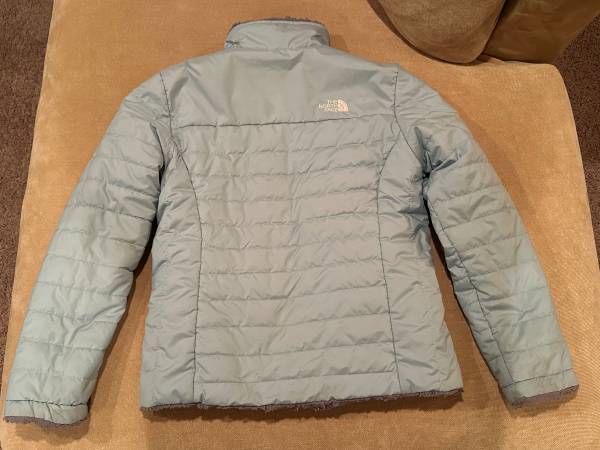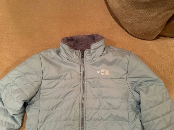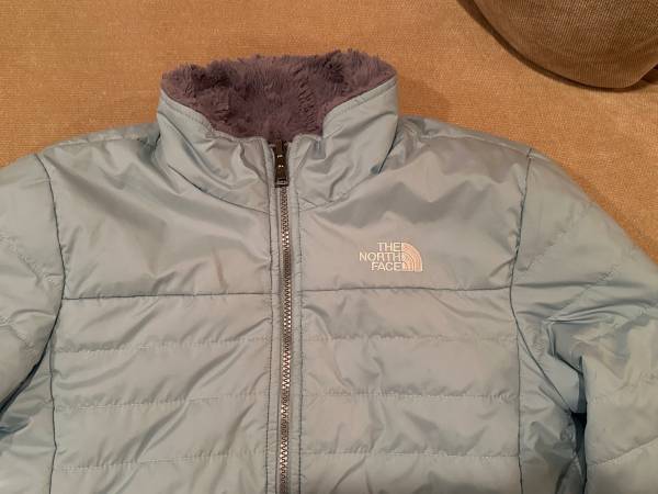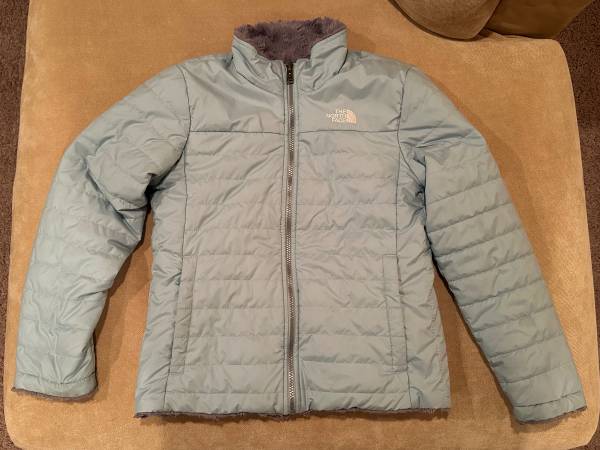 The Northface girls reversible jacket size 14-16 or girls large. This is in excellent condition. We bought it new and my daughter unfortunately had a growth spurt and only was able to wear for one season.
