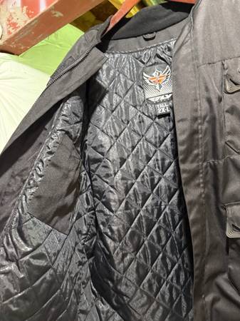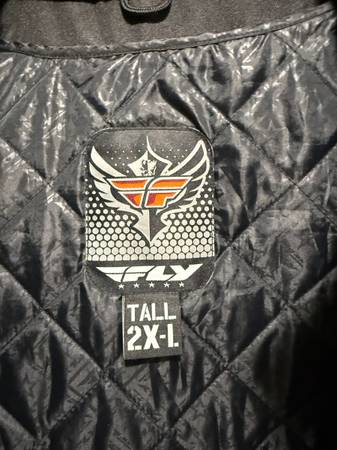 Men's FLY touring motorcycle jacket 2XL tall. Great condition. Jacket has removable inner liner. Pads in the shoulders, elbows and back. Pads are removable. Adult owned, non smoker, no stains, no odors, rips or tears.