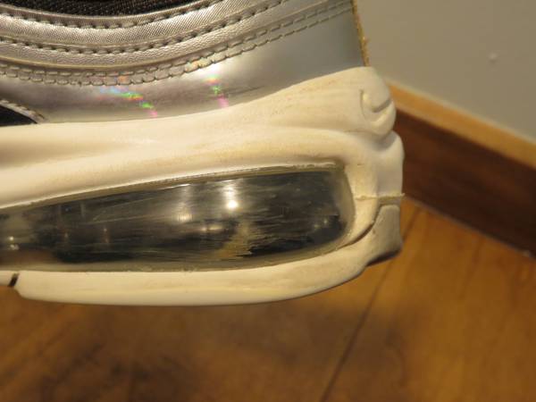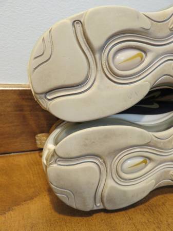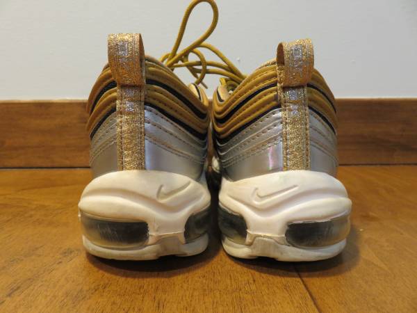 This listing is for one pair of Air Max 97 shoes from Nike. The model number is AQ4137-700. Based on the tag, these shoes had their production run in 2018. These are women size 8 (US), 5.5 (UK), 39 (EUR), and 25 (cm). These are used and have some scuffing and imperfections around the front and back. The bottoms have some wear on the tread – more noticeable on the right shoe. Overall these are in good condition. Please review all posted pictures. Pictures are of the actual item you will receive. Item comes from a smoke-free home. Feel free to ask me any questions.