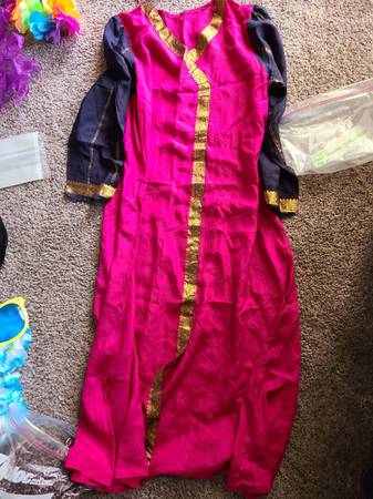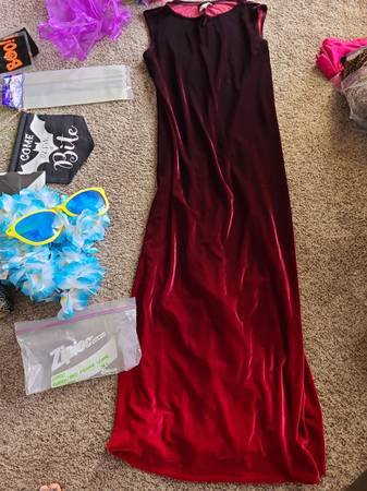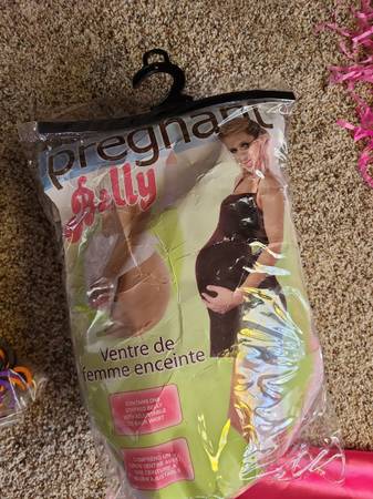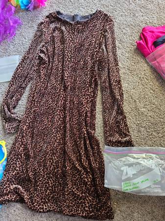 Halloween made easy with a pregnant belly and a dress or two, ready to cut to fit the look you're going for. Long sleeve leopard print dress is size 10. Sleeveless red dress is size large. Pink,...