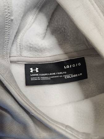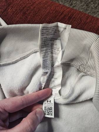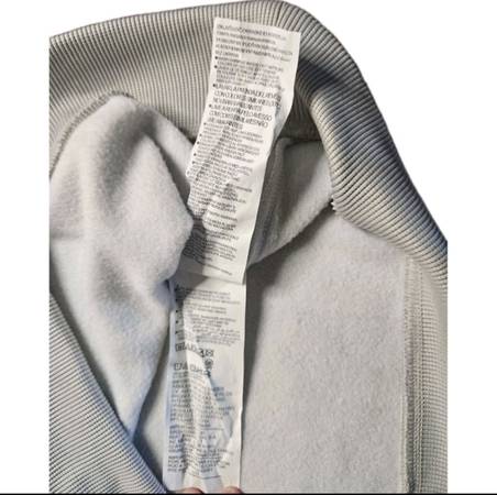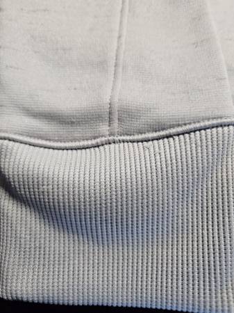 Good used condition. Synthetic Fleece lining keeps you warm. Generous scuba style neckline. It has some loose threads around the neckline and the bottom hem, as well as some wear spots on the cuffs and bottom hem.