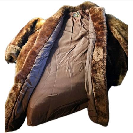 Good used condition. This will need to be professionally cleaned by someone familiar with fur coats. This coat is real fur, but I am unsure of the type. I'm unable to find a material tag/stamp or union made tag on the outer lining, so my guess is it's under the lining. The fur is most likely sheared beaver if I had to make a guess, based on the texture and appearance. The lining is in remarkable shape considering the age, but there are a few spots that are coming unstitched. This was sold at the Denver Dry Goods Company that went out of business in the 80s. This is not only a practical and warm garment but a lovely piece of local history.