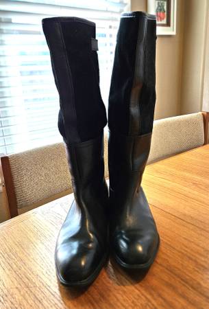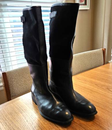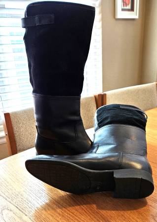 These boot are originally $200 They are are genuine leather and swede in black. They very comfortable, flat, and to walk the whole day with them. They are made in India and they are Wide Calf. I used them twice. You must check them out. Fall and winter are around the corner!