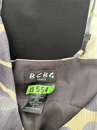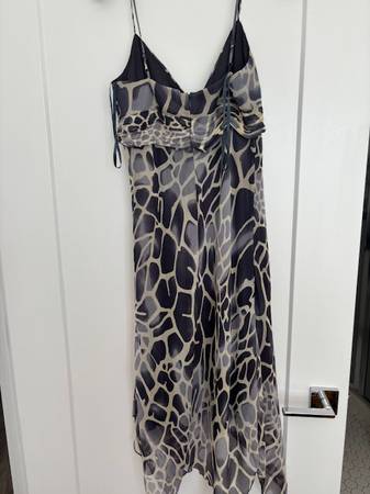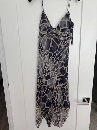 Very pretty, 100% silk dress Size 8 Handkerchief hem; fits nicely Recently dry-cleaned Wear it with a hat for an Indian summer party!