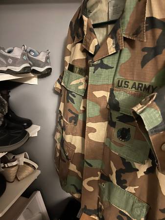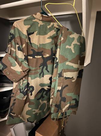 This could be the Halloween Costume of your DREAMS! Medium Size Army outfit / Men's Size Medium/ Heavy Duty and Clean No Defects comes with the Shirt, Pants, and Belt as shown. More like heavy jacket material; Not light-weight. Pressed/clean, and in like-new condition . No odors such as smoke or pet, etc. Pockets Galore to store all your trick or treating candy or at least your wallet, keys, sunglasses, and kitchen sink. US Army Recruiter Real outfit/ sleeves can be rolled up as shown or full length. 80$ ; cash or zelle. Thanks for taking a look and have a Great Day