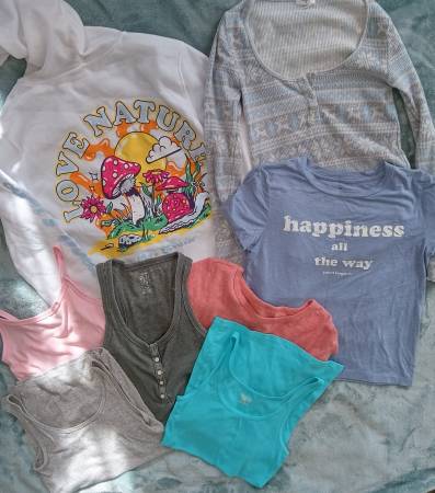 This is a huge lot of 100+ clothing items that are NEW and Most Unworn (a few lightly worn), sizes XS/Small and Juniors size 4. A couple have tags.