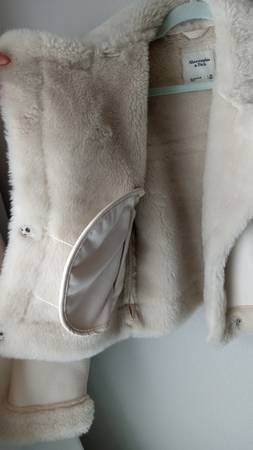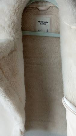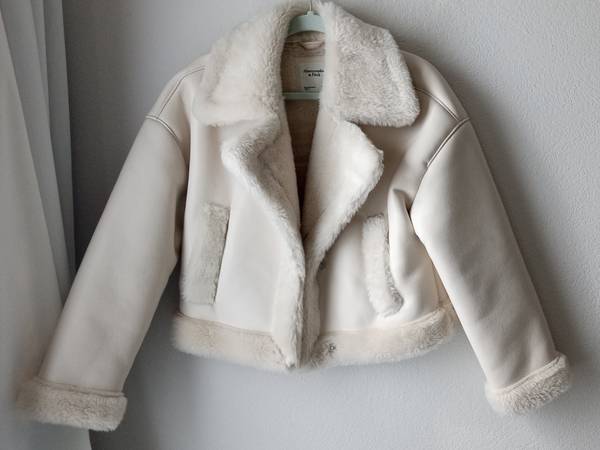 This is a NEW, Never Worn Abercrombie and Fitch Faux Fur lined Vegan Leather Coat Cream Color Size XS. No Tags.