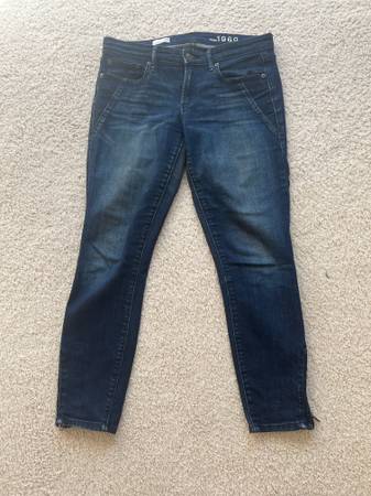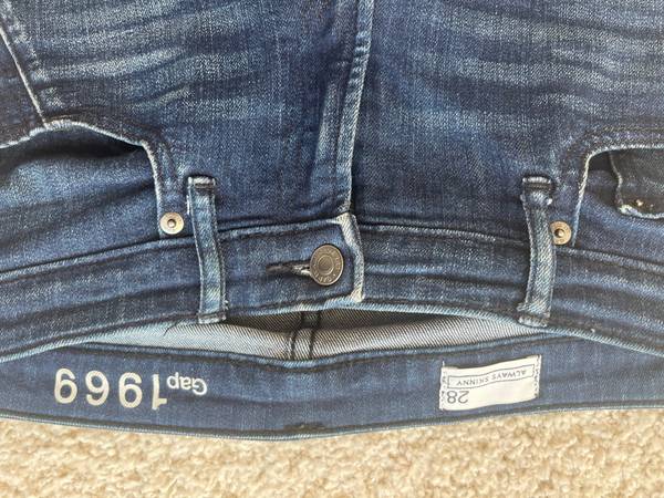 Gap 1969 blue jeans for a woman with zippers on both legs - size 28 R. $10. Great condition. Call or text if interested.