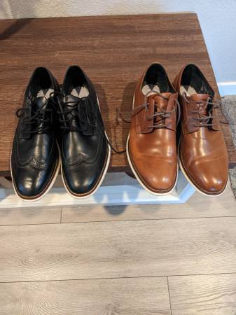 I have 2 pairs of Johnston & Murphy UPTOWN OXFORD shoes, 1 Black, size 11 M and 1 Brown, size 11.5 M, that as you can see from the invoice I bought in 2021, so yes, they're 4 years old, and I paid about $118 EACH with taxes! That said, if you look at them you'd never know they're that old because I have taken really good care of them. I wore them for about a year then they started hurting my feet so I stopped, tried them again this past weekend for a wedding and just couldn't do it. DSW sells them now for about $160 each but they are slightly different and yes, I realize that is a price for brand new in the box and that's why I'm selling these for only $40 bucks EACH. Please get in touch with me at 3 zero 3, five 7 zero, 6 two 4 two with any questions or to stop by and check them out, thanks.