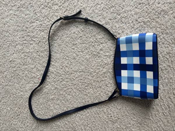 Kate Spade blue white black checkered small crossbody leather bag - $40 (Dry Creek/Yosemite)
