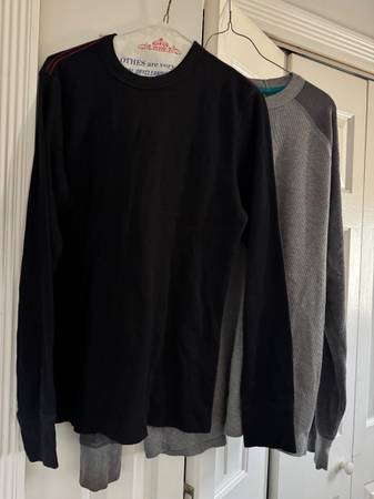 Black and gray long sleeve thermal shirts Men’s size medium Excellent condition $10 cash for both