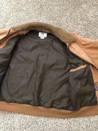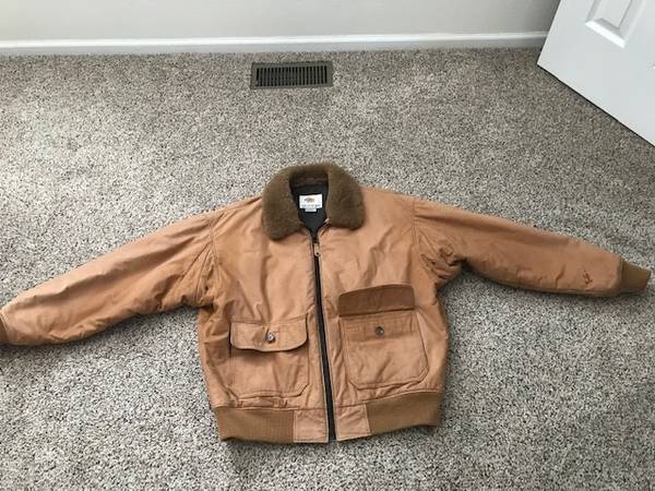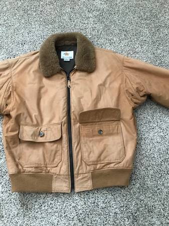Selling a Men's vintage (1990's) Golden Bear (fine outer wear made in California) bomber-style jacket. It is made from nubuck leather and is a size 44.