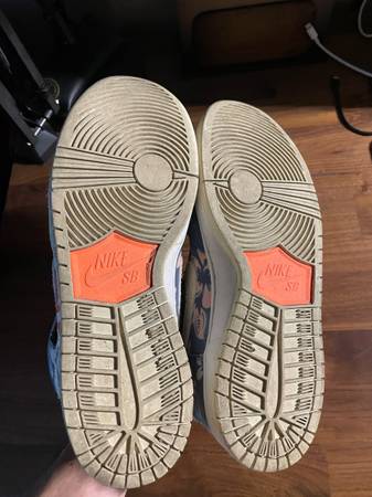 Used in worn condition, these shoes are tear away design meaning they’re not actual holes as there’s a second layer that shows up when the first layer tears. No box. Size 9