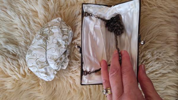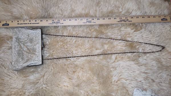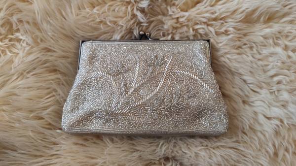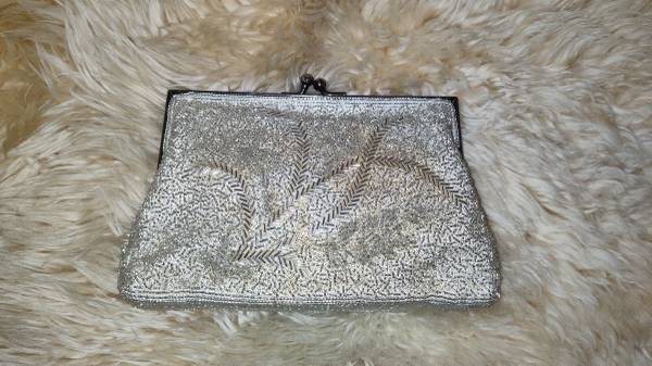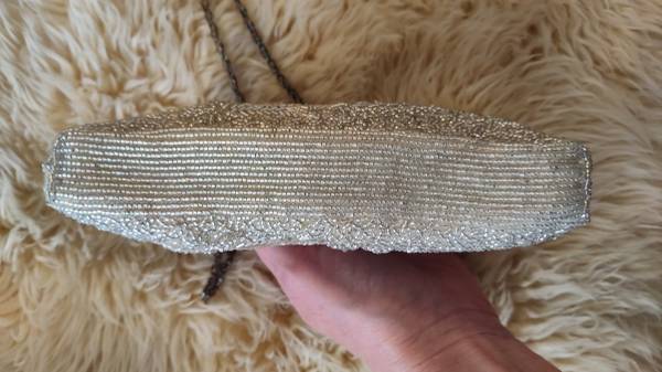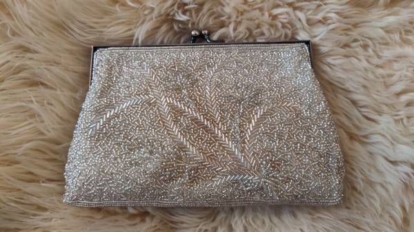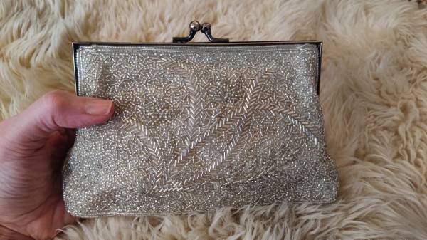 Vintage Silver Glass Beaded Evening Purse / optional chain handle
