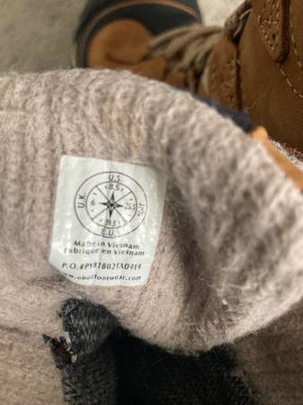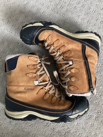 We are selling a lightly used pair of women's Oboz Sapphire 8" insulated, waterproof winter snow/hiking boots in Size 8.5. The boots feature Nubuck waterproof leather, B-Dry waterproof/breathable membrane, O Fit thermal insoles, 3M Thinsulate lining, zippered sides, and sculptured fit for cushioning and support. These highly-rated boots retail for $150 new. We're asking $60. Thanks for looking!