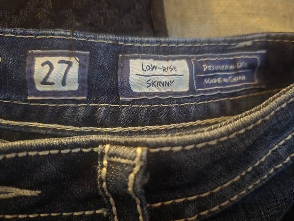 I have a dark blue pair of women's miss Me jeans size 27 waist they are low rise skinny cut. These jeans are in like new condition. Im asking $20 for the jeans. Please call or text Erin if interested at show contact info