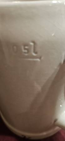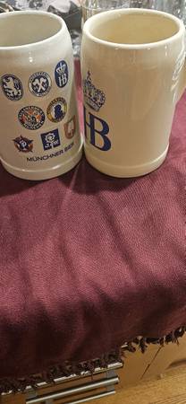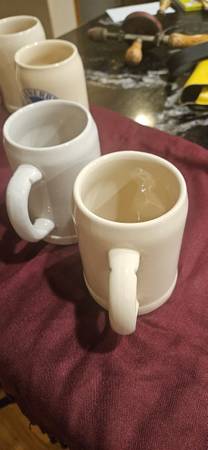 Five dif.mugs, all in perfect condition. .5 L, stoneware with great coloration. $5 each, your choice! Call to come see them!