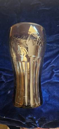 Large, 6" tall brown tinted Coca Cola glass. Perfect condition. $5.