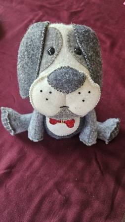 Plush Grey felted puppy dog measuring about 7" tall. Boiled wool and adorable! $5 Call