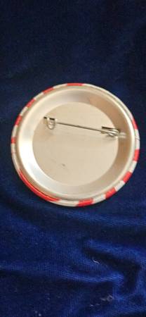 Red and white striped button, 2-1/4" across, formerly used by UAL to identify children travelling alone. New condition. $3