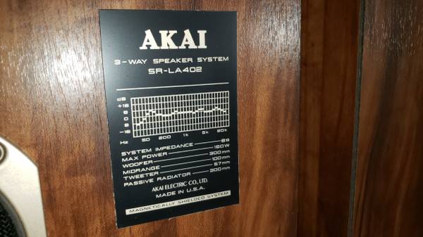 AKAI 3-WAY SPEAKER SYSTEM MODEL SR-LA402 everything working great. Contact me at ( tuoitre20013G...mail...)
