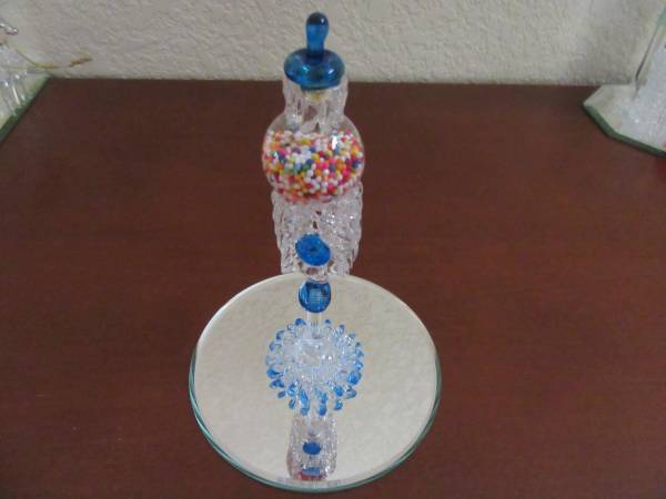 Cute gumball machine that is 5 1/2 x 1 inches wide. Comes with a 4 inch round mirror for display.