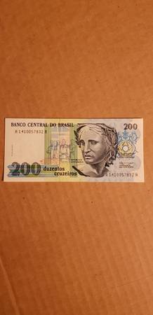 this note is from brasil. made in 1990. 1--200 cruzeiros. condition is uncirculated. cash only. meet in person in public place.