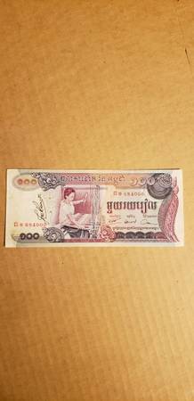 this note is from cambodia. made in 1973. 1--100 riels. condition is uncirculated. cash only. meet in person in public place.